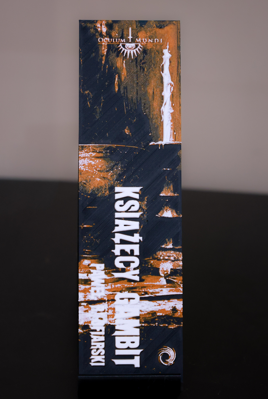 Zakładka 3D Książęcy Gambit to wyrafinowany dodatek dla czytelników ceniących intrygi, polityczne rozgrywki i klimat dworskiej gry o władzę. Jej projekt został zainspirowany okładką powieści „Książęcy Gambit” autorstwa Pawła R. Ofiarskiego, oddając atmosferę strategii, napięcia i elegancji charakterystycznej dla świata przedstawionego w książce.